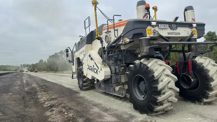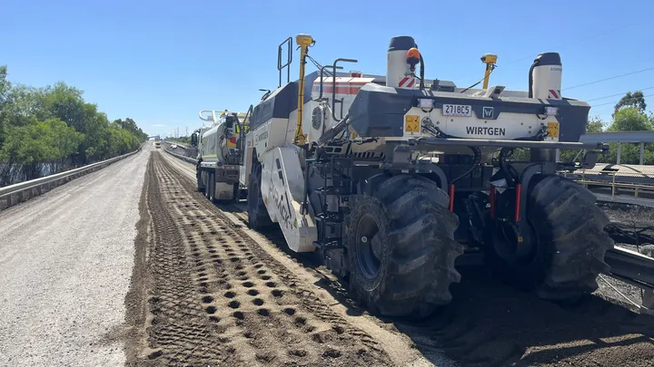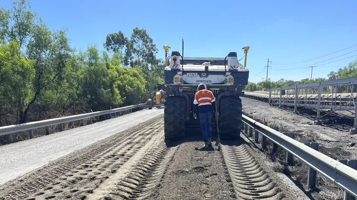 Works include the rehabilitation of approximately 1.6 kilometres of heavily deteriorated access road using in-situ cement stabilisation and a high-performance PMB double/double spray seal, delivering a durable, long-term pavement solution suited to ongoing mining operations.