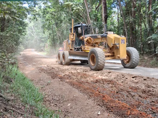multiple packages under the DRFA 2023 Unsealed Roads Program across Bloomfield, Degarra, and the Cape Tribulation–Bloomfield Road corridor in Far North Queensland, following significant damage caused by ex-Tropical Cyclone Jasper. The works comprised restoration and rehabilitation of critical transport infrastructure, including heavy formation grading, pavement reconstruction, gravel resheeting, drainage improvements, culvert and table drain reinstatement, repair of washouts and scoured areas, and installation of erosion and batter protection. Additional works within township areas included two-coat bitumen sealing, patching, and replacement of concrete pipes and headwalls. Delivered across remote and environmentally sensitive locations, including areas adjacent to the Daintree Rainforest, the project required careful management of wet season conditions, long-distance material haulage, and limited local support infrastructure. Durack Civil successfully coordinated logistics, traffic management, and environmental controls to maintain access for local communities and tourism operators, ensuring all works were completed in accordance with DRFA, FNQROC, and Council specifications while enhancing long-term network resilience.