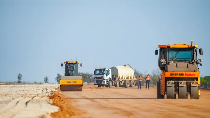 Durack Civil is engaged by Pormpuraaw Aboriginal Shire Council to upgrade the Pormpuraaw Aerodrome, addressing significant pavement distress that impacts vital access for emergency services, freight, and the local community. To minimise disruption to flights during construction, our team constructed a temporary airstrip at a nearby site to maintain continuous access for aircraft and essential services. The scope of works includes clearing, demolition, site preparation, ripping and milling of the existing seal, and construction of a cement-treated base course. This will be followed by the application of a two-coat sprayed bitumen seal with a final sand emulsion seal, alongside the installation of drainage structures and apron lighting extensions. Environmental controls, quality testing, and site reinstatement will also be carried out. A key challenge is the remediation of swampy, boggy subgrade materials, requiring careful excavation and replacement to ensure long-term pavement performance and prevent costly delays from moisture ingress and ground instability.