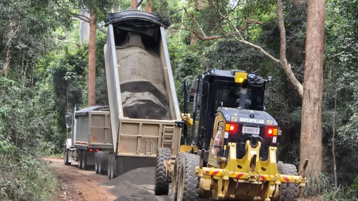 The project includes road maintenance and upgrades such as grading, re-sheeting, widening, realignment, and subgrade stabilisation, along with drainage improvements, vegetation management, and cattle grid works.